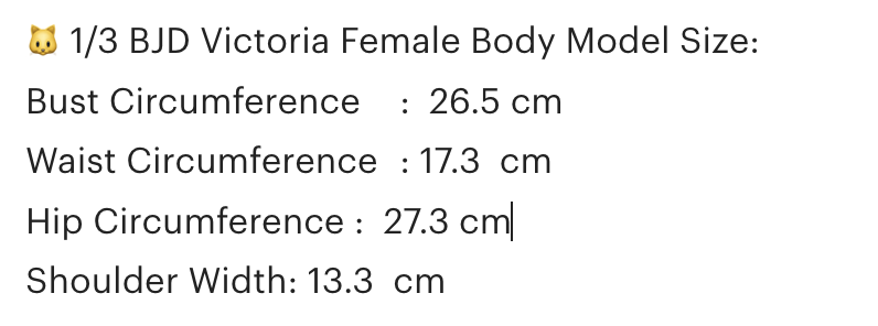 🐱 1/3 BJD Victoria Female Body Model Size: