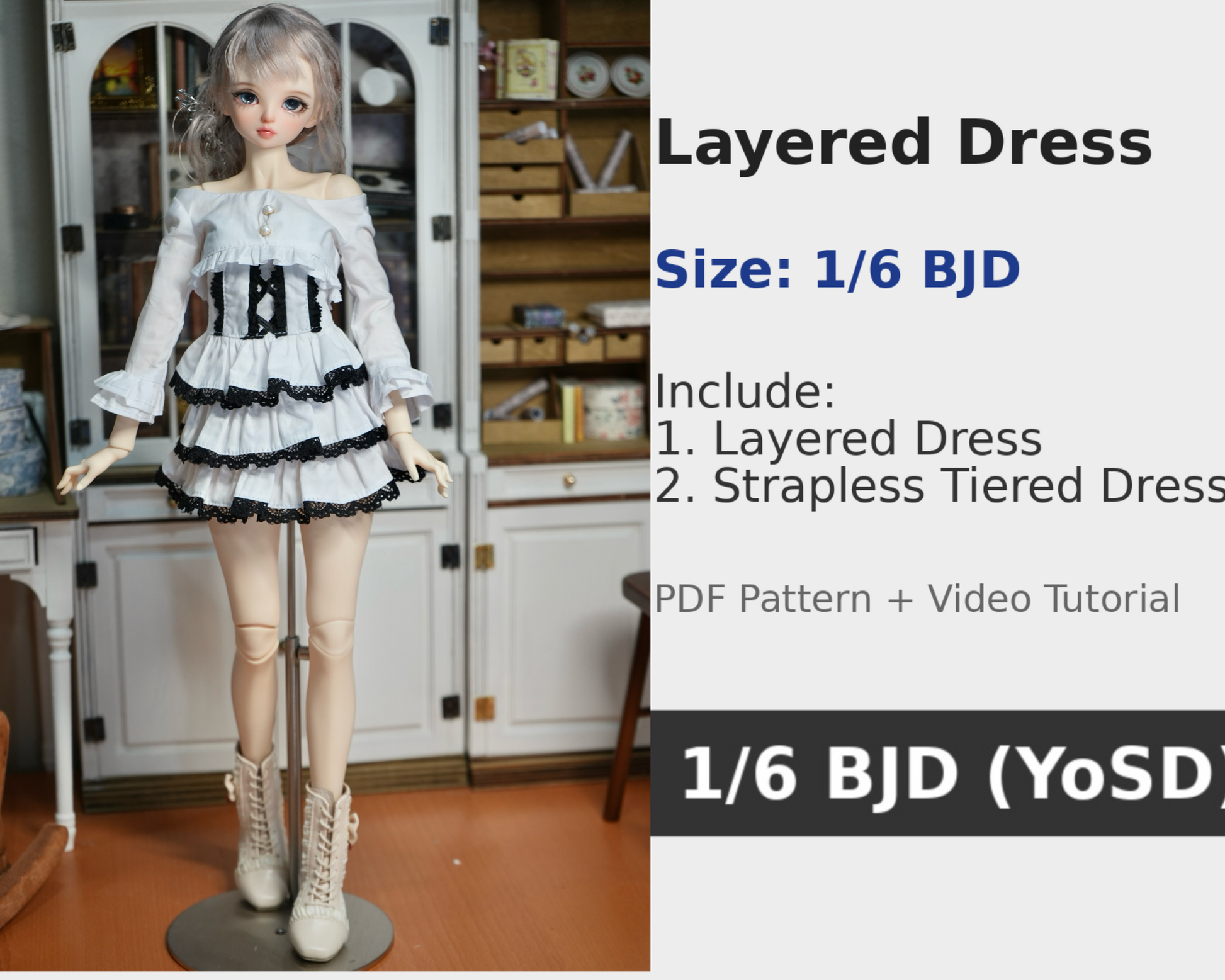 阿彩 1/6 BJD Doll Dress Pattern - Layered dress-include 5mm seam allowance