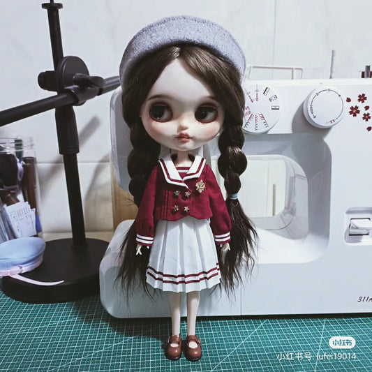 阿彩 Blythe Doll Dress Pattern - school girl red-include 5mm seam allowance