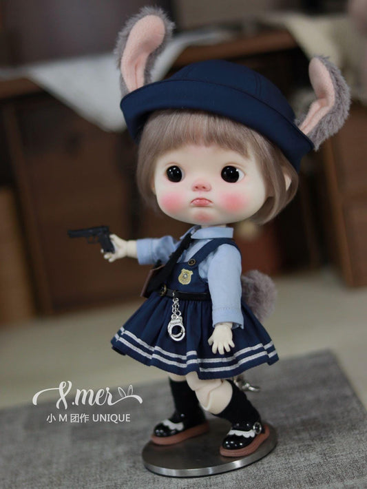 小Mer OB11 Obitsu DOLL Patterns Bunny Dress with Hat set: 7 Items: Hat, Tie, Shirt, Vest Dress, Belt, Gun Holster, Socks-no seam allowance
