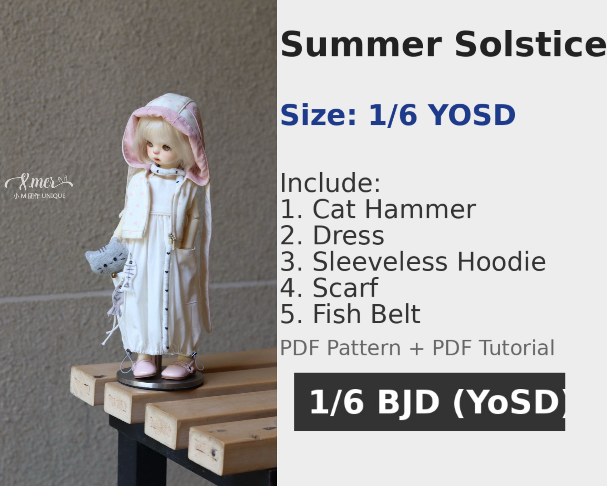 Incluye un patrón BJD a escala 1/6 y un videotutorial. Presta atención a las medidas de la modelo, ya que la cintura de este patrón podría no ser adecuada para MSD. Sobre todo si tienes una Minifee, le quedará grande. Compara la talla de tu muñeca para decidir si la compras. Encuentra el mismo patrón, pero en diferentes tallas, como 1/3 y 1/4, en otro enlace.